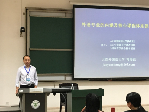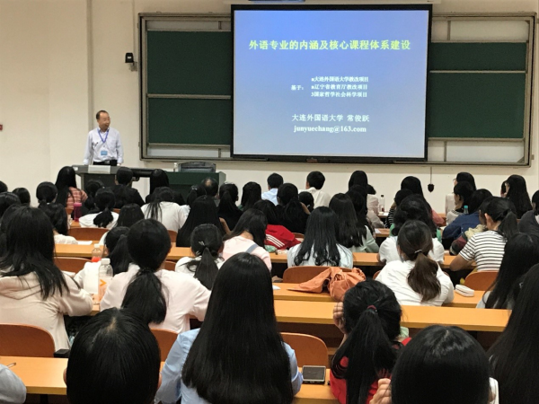 近日,大连外国语大学博士生导师常俊跃教授莅临600cc全讯白菜自助注册指导,为600cc全讯白菜自助注册师生作了一场题为“外语专业的内涵及核心课程体系建设”的讲座。