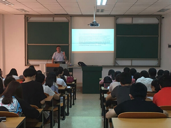 6月8日至9日,复旦大学外国语言文学学院博士生导师褚孝泉教授莅临600cc全讯白菜自助注册指导,并于9日上午为600cc全讯白菜自助注册师生做了一场题为“乔姆斯基的变和不变”的讲座。