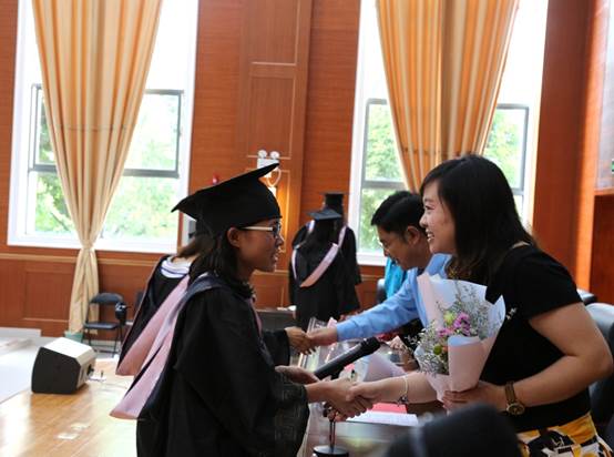 典礼上,毕业生为在场的每一位教师献上饱含深情的鲜花,感谢外院每一位关心、关怀、帮助过的人,让他们一同见证成长、分享喜悦。