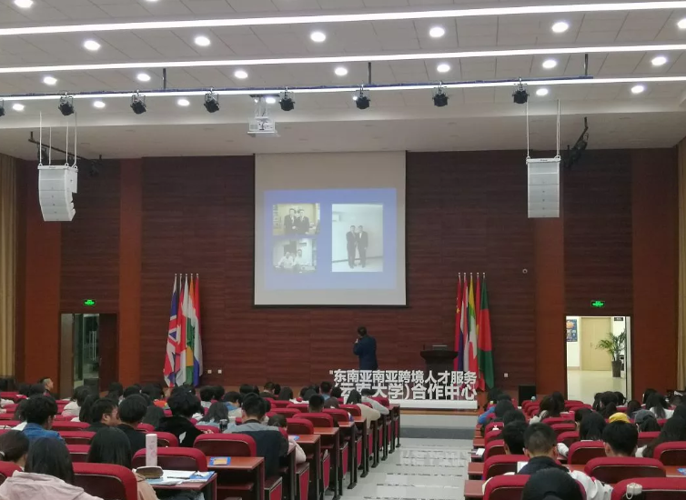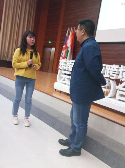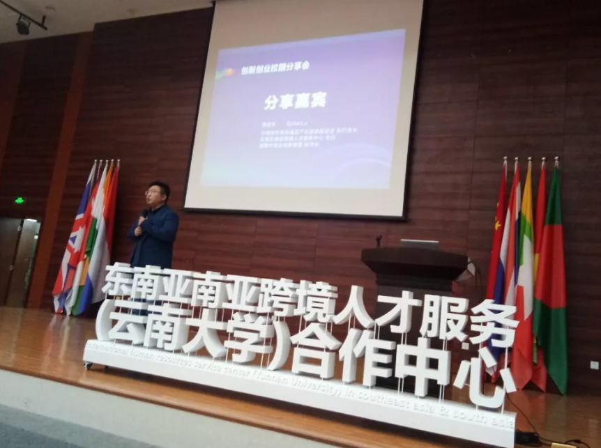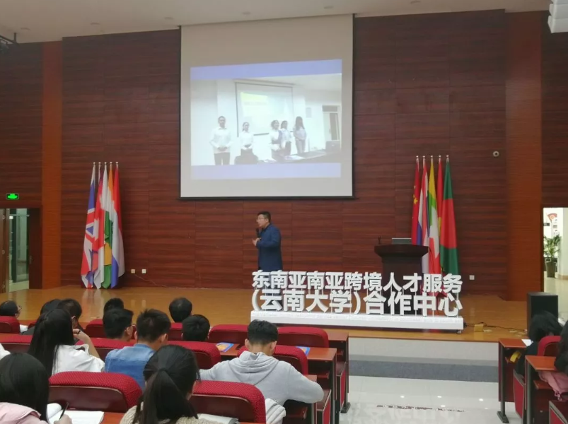 最后一项议程是云南省东南亚南亚产业发展促进会执行会长、东南亚南亚跨境人才服务中心主任鲁进京对自己创新创业经历的分享。他强调了创业中个人的坚持和学习能力及团队合作信任、极致执行的重要性。其次,向大家阐述了自己对云南融入"一带一路"建设的思考与倡议。强调了云南要发展民族特色,做生态文明建设的排头兵,聚焦"一带一路",强化国内外资源活动。最后由云南的定位向同学们提出了创新创业的建议。听完分享,同学们受益匪浅。