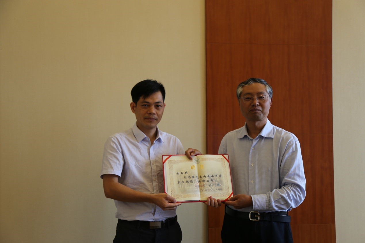 为与刘志强教授在东南亚国家国情研究特别是越南历史、文学领域研究的长期合作,2023白菜网总站大全校党委书记林文勋教授隆重为刘志强博士颁发了客座教授聘书。