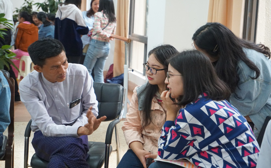 讲座开始前,2019年缅甸民盟青年骨干交流研修班学员和缅甸语专业的学生们就中缅服饰文化、饮食文化、社交礼仪文化和影视文化四大主题展开了深入讨论和互动交流。交流过程中,同学们积极讨论,踊跃发言,主动向缅甸朋友请教,在学习和了解缅甸文化的同时,也尽自己所能向缅甸朋友讲述中国文化,共同去体验两国文化的异同。在各组同学将讨论成果一一总结汇报之后,缅甸语系的同学们表演了《彩云之南》《新年的雨》《谢谢你》等歌曲和舞蹈,体现了缅语系同学们对缅甸语言、文化和艺术方面的浓厚兴趣。接着,缅甸民盟青年骨干交流研修班学员们也都情不自禁为同学们歌唱《伊洛瓦底》,在这样的文艺表演中,再次迸发出文化和艺术交流的火花。
