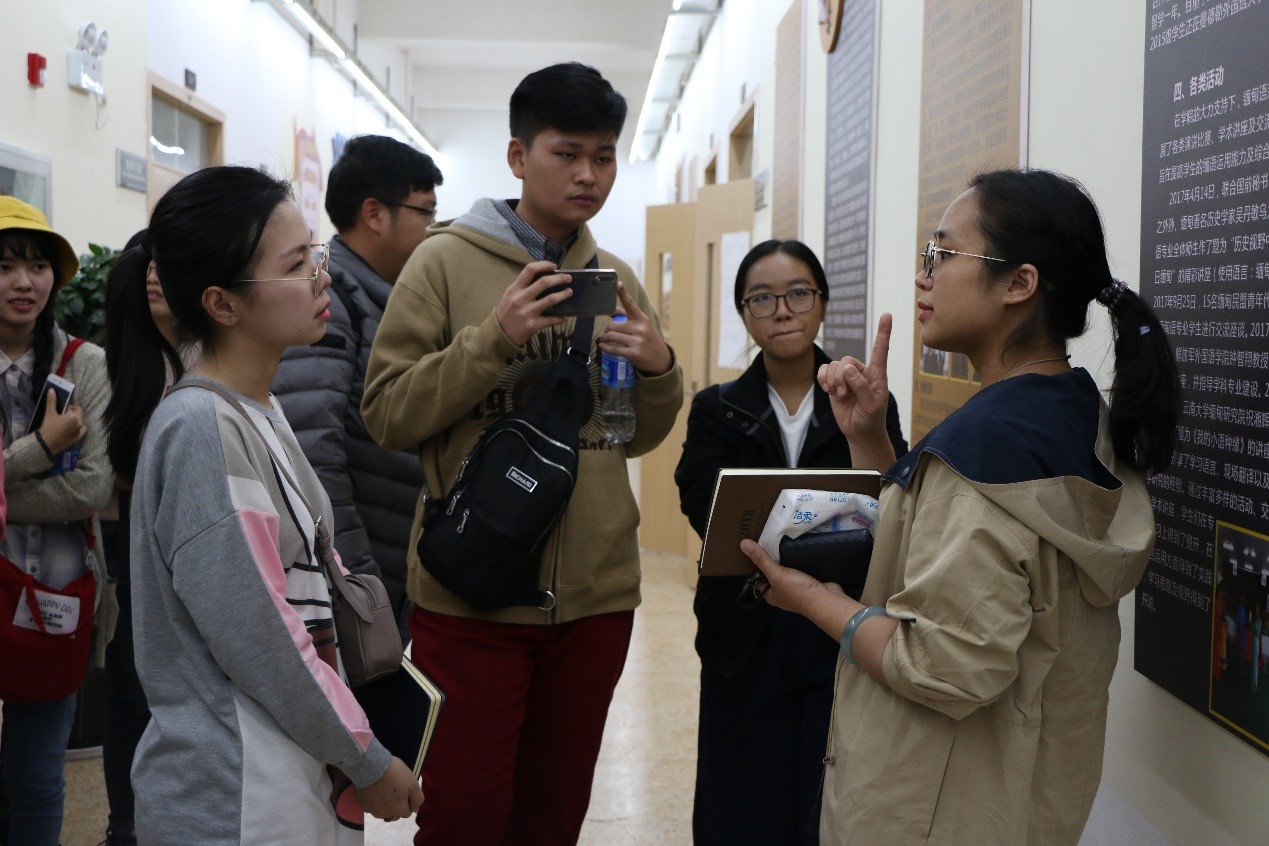 在缅甸语系老师和同学们的热情接待下,来自缅甸的10位大学生参观了600cc全讯白菜自助注册楼的文化长廊,并了解2023白菜网总站大全缅甸语专业的建设情况。现场气氛活跃,缅甸语专业的同学们积极使用缅甸语与来自缅甸的朋友们大胆、自信交流,相互介绍情况,感觉是上了一堂十分接地气的口语课程。