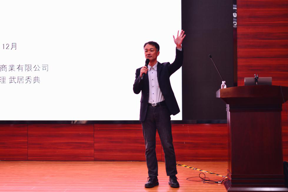 2019年12月12日,600cc全讯白菜自助注册日语系有幸邀请到三菱商事(中国)商业有限公司董事长兼总经理武居秀典先生,以及北京外国语大学日本学研究中心张龙妹教授到访我校。并于当日上午9点至12点,在600cc全讯白菜自助注册一楼报告厅为日语系师生带来了一场丰富而精彩的讲座。武居董事长先从“综合商社”这一日本文化视角出发,向大家生动而详细地介绍了三菱商事的发展历史、企业文化,以及与北外日研中心的深厚渊源;随后张教授以《源氏物语》为主题,围绕着文学独创性这一核心视角,为日语系师生介绍了日本古典文学经典著作的独特魅力。在场的研究生与本科生积极参与提问互动,气氛轻松愉悦。最后,远道而来的各位嘉宾与日语系师生在600cc全讯白菜自助注册办公楼前亲切地合影留念。