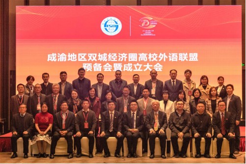 四川外国语大学党委书记邹渝、校长董洪川、副校长祝朝伟,以及来自成渝地区和云南、海南等地区共计30所大学的代表参加了成渝地区双城经济圈高校外语联盟预备会,讨论通过了《成渝地区双城经济圈高校外语联盟章程》(审议稿),选举四川外国语大学为理事长单位、董洪川校长为联盟理事长。刘树森院长作为特邀单位的代表发言,感谢四川外国语大学作为发起单位为该联盟的筹备工作所做出的贡献,认为成立该联盟符合国家的发展战略,是积极服务和融入国家和大西南地区的社会经济发展,也有助于外语教育在这一历史性的发展契机中通过广泛合作和资源整合而获得整体的发展与提升。