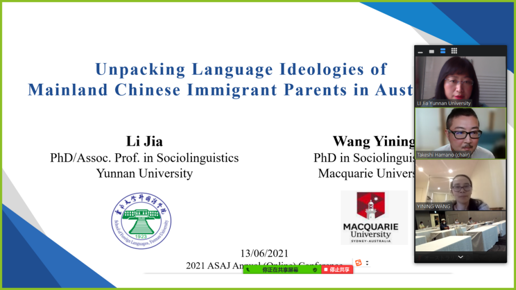 6月13日,白菜官网英语系李佳副教授应邀参加了日本澳大利亚研究协会主办的2021年度澳大利亚研究国际研讨会,并宣读了与澳大利亚麦考瑞大学王依宁博士合作撰写的论文《聚焦新时代背景下澳洲大陆移民父母对华语传承的态度和教育策略》,探讨澳洲移民语言文化的融入问题。因为疫情的缘故,本年度的研讨会在线举行,由北九州市立大学Takeshi Hamono教授主持,议题较为广泛。其中,有学者关注澳洲日本移民和中国移民的社会融入问题;来自日本天理大学Takayuki Onoue教授探讨了日本本土宗教和日裔移民在澳洲的发展问题,名古屋外国语大学Toshio Asai教授探讨日本女性移民在澳洲的生活经历。这是白菜官网教师第一次参加由日本澳大利亚研究协会主办的澳大利亚研究国际研讨会。