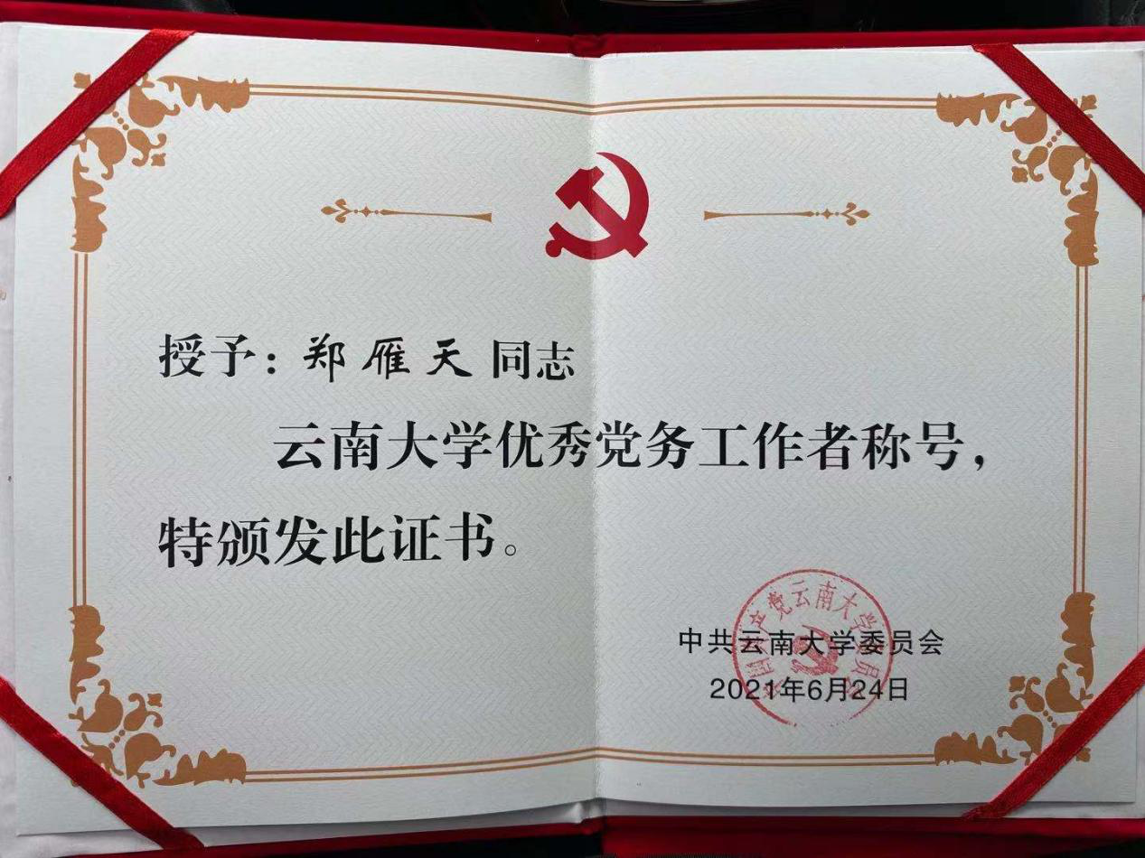 为进一步加强基层党组织建设,推动创先争优活动向纵深发展,激励广大党员、党务工作者和基层党组织以改革创新精神推进学校“一流党建”建设,在中国共产党成立100周年之际,表彰了一批优秀共产党员、优秀党务工作和先进基层组织。白菜官网教师党员郑雁天同志在此次表彰中获“优秀党务工作者”称号,600cc全讯白菜自助注册学生第一党支部被授予“先进基层党组织”称号。