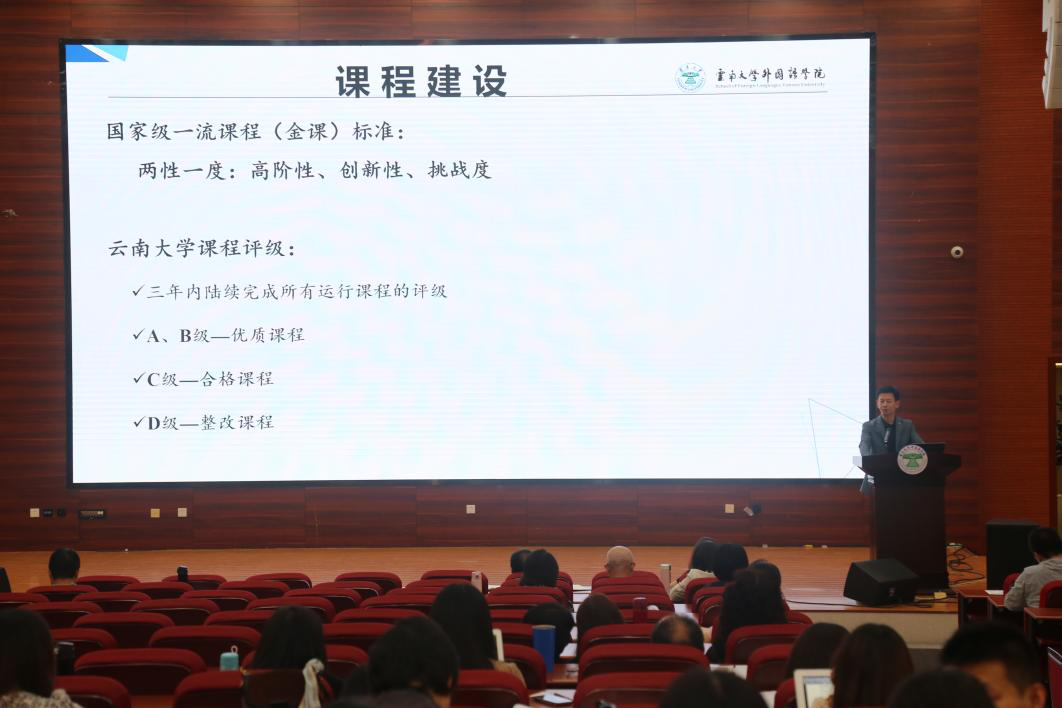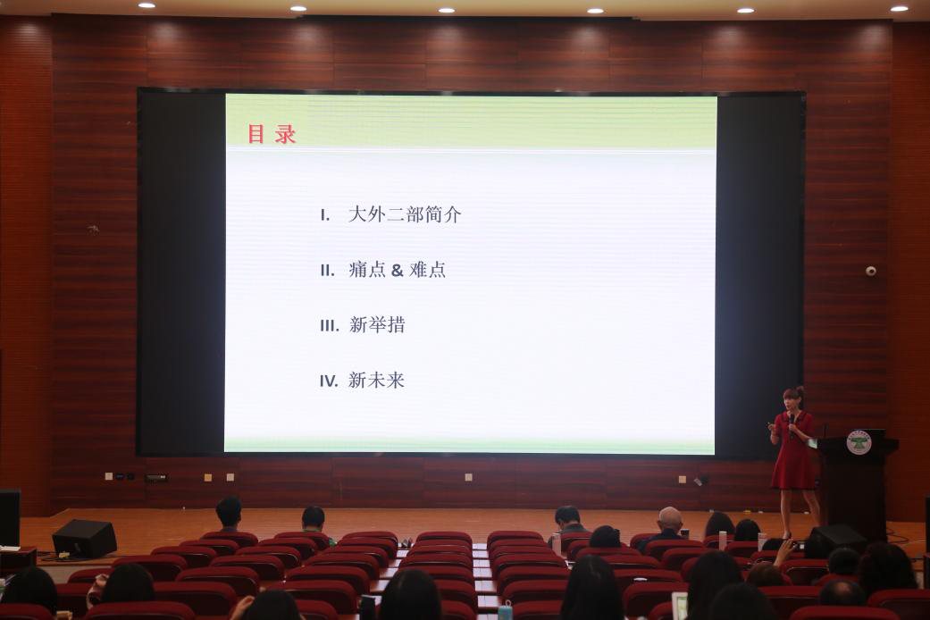 大学外语第二教研部主任王坚做了题为“新标准,新未来”的学科建设报告,报告中对大外二部的基本情况进行了简介,并针对师资匮乏、考研英语过关率低、竞赛减少、学分减少等痛点难点提出了新举措。