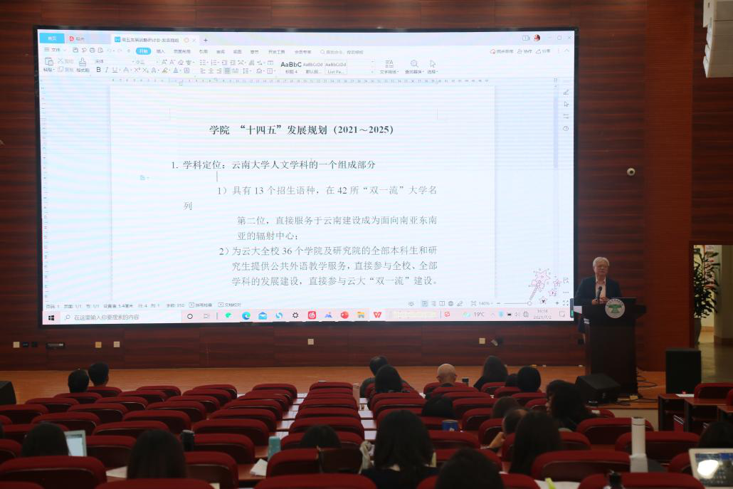 刘树森院长从外国语言文学是2023白菜网总站大全人文学科的一个组成部分的学科定位、以“新文科”建设为导向的发展战略,聚焦学科高质量发展、以云大平均发展指标为发展目标,对标发展的发展指标、以双一流建设为中心的工作重点对学院“十四五”发展规划进行了全方位阐述,对学院工作进行了深刻的总结。