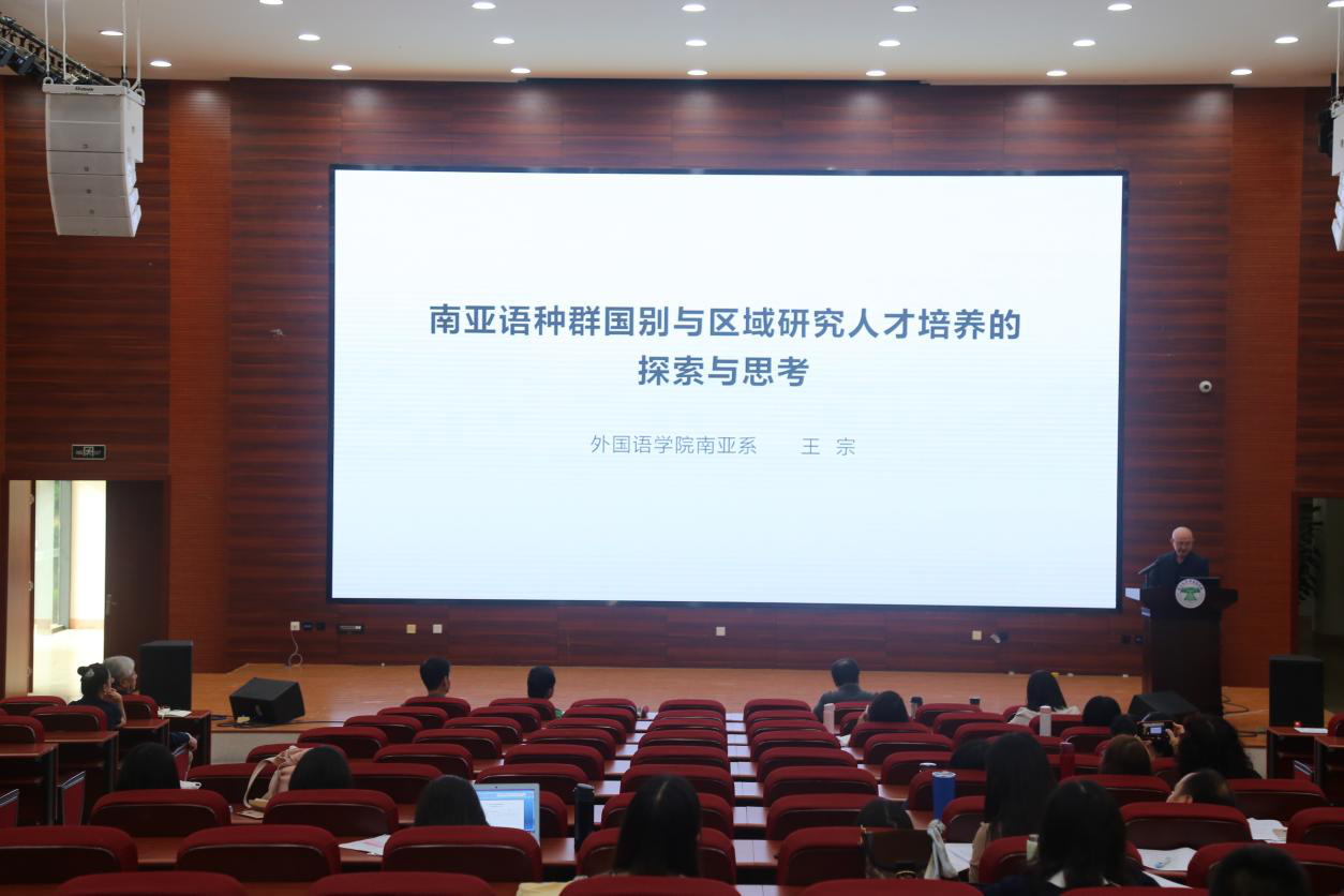 南亚系主任王宗从一带一路大背景、国际传播需要、学生就业需要三个方面说明“新文科”背景下南亚语种群国别与区域研究人才培养的必要性,总结了应用型国别区域人才培养,“外语+专业”专业等在人才培养方面的创新与实践,并紧紧围绕学科建设做出了相应的规划与思考。