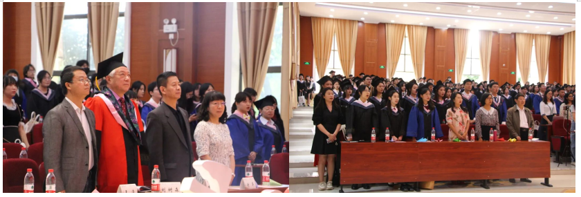 典礼以歌曲串烧和毕业视频的形式,带领大家快速融入到现场氛围中,在欢声笑语和回忆思绪中,毕业典礼拉开了帷幕。