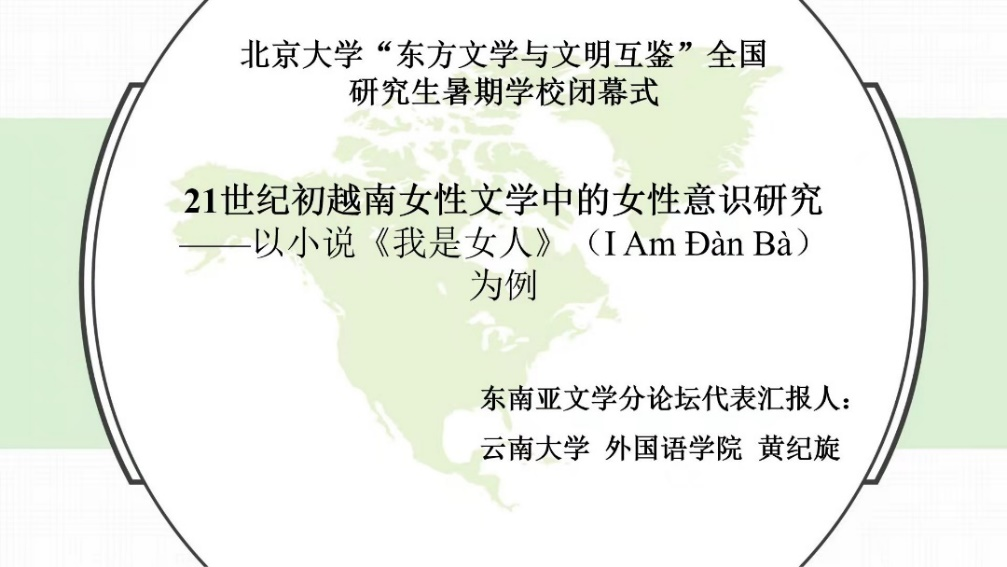 在暑期学校闭幕式上,白菜官网东南亚系越南语专业研一学生黄纪旋应邀作为东南亚文学分论坛的代表,作了以《21世纪初越南女性文学中的女性意识研究》为题的学术报告,分享了她对这一专题的研究成果。