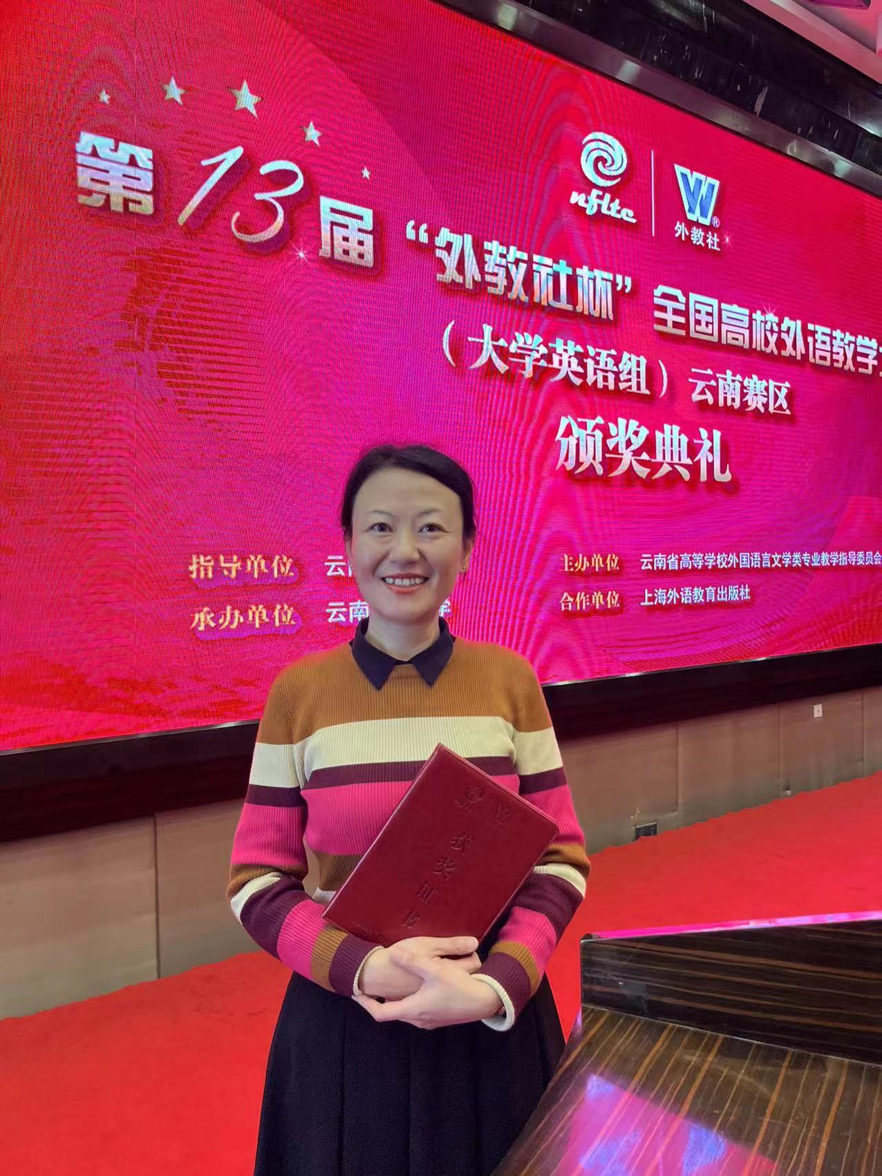 为进一步推动云南省高校教师研究外语教学理论,探索课程思政与外语教育的有机结合,提升大学英语教师的育人素养、学科素养、教学素养、信息素养,推动高等教育高质量发展,由云南省教育厅指导、云南省高校外国语言文学类专业教学指导委员会主办、上海外语教育出版社协办的第十三届“外教社杯”全国高校外语教学大赛(大学英语组)云南赛区比赛暨颁奖典礼于2022年10月28日至30日在昆明成功举办。600cc全讯白菜自助注册大学外语第二教研部王娟老师喜获云南赛区综合课组一等奖。