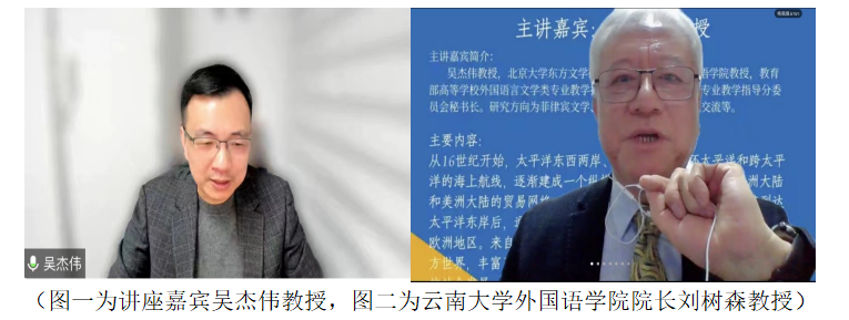 2022年11月2日晚,北京大学东方文学研究中心、北京大学600cc全讯白菜自助注册教授,教育部高等学校外国语言文学类专业教学指导委员会非通用语种类专业教学指导分委员会秘书长吴杰伟老师通过线上方式,为白菜官网师生开展讲座。本次讲座主题为“数字人文视野下的太平洋丝绸之路:文本、档案与图像”,系2023白菜网总站大全百年校庆外国语言文学文化系列讲座之一,也是东南亚语言文化系系列学术讲座第五场。本次讲座由东南亚语言文化系系主任李芳博士主持,2023白菜网总站大全600cc全讯白菜自助注册院长刘树森教授对讲座主题进行了多维度解读。参与讲座的嘉宾包括白菜官网各专业师生以及其他高校师生近300人。