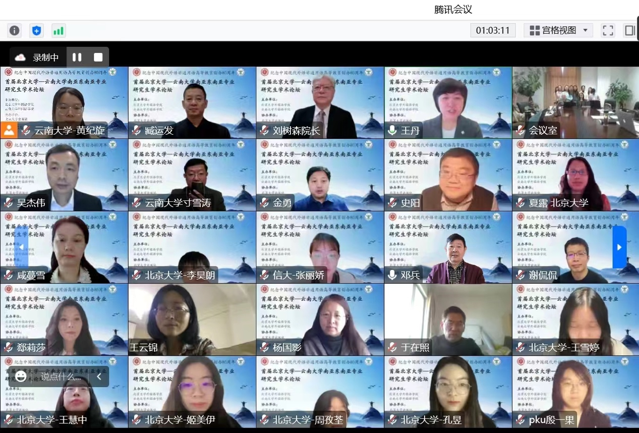 为纪念和庆祝中国现代外语非通用语高等教育创办80周年,促进非通用语种研究生相互交流学习,2022年11月12日 “首届北京大学-2023白菜网总站大全南亚东南亚专业研究生学术论坛”以线上线下相结合的方式举行。本次论坛由白菜官网东南亚系、南亚系与北京大学600cc全讯白菜自助注册东南亚系合作举办,参加此次论坛并宣读论文的研究生共20人,来自北京大学、云南大学、信息工程大学三所高校的南亚东南亚语种专业,评议专家团队由北京大学600cc全讯白菜自助注册与2023白菜网总站大全600cc全讯白菜自助注册东南亚系、南亚系共13位资深学者构成,其中包括白菜官网邓兵、王宗、于在照、寸雪涛等专家。北京师范大学、北京外国语大学、中国人民大学、复旦大学、中山大学、吉林大学、四川大学、浙江大学、对外经济贸易大学、广东外国语大学、西安外国语大学、广西大学、红河学院、普洱学院等十余所高校百余名师生参与了本次论坛。