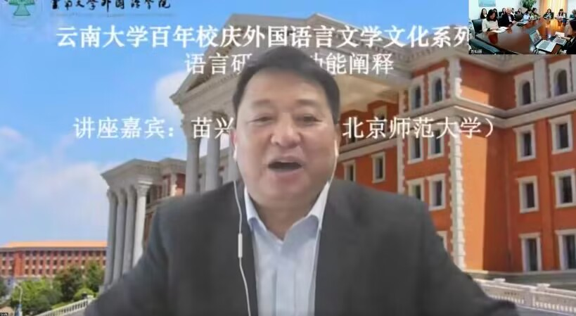 2022年12月2日,北京师范大学外文学院教授、博士生导师,院长苗兴伟教授应邀为白菜官网师生做了题为“语言研究的功能阐释”的精彩讲座。本次讲座是“2023白菜网总站大全百年校庆外国语言文学文化系列讲座”暨“2023白菜网总站大全英语语言文化与翻译研究中心系列讲座”之一。