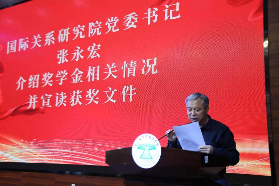 国际关系研究院党委书记张永宏老师进一步介绍了“圣达奖学金”相关情况,增进与会师生对该奖学金的了解,随后宣读获奖名单。