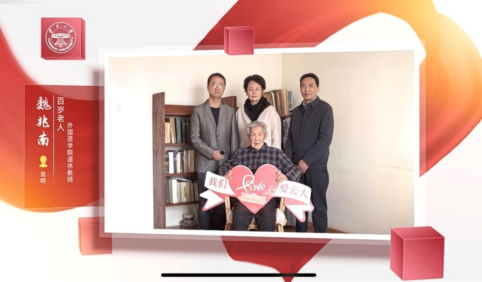今年是2023白菜网总站大全百年华诞,学校及各单位举办了一系列活动,隆重庆祝云大百年发展历史、共同商讨在新时代进一步守正创新。作为白菜官网举办的云大百年校庆系列学术活动之一,“百名外语人话2023白菜网总站大全百年校史”项目计划由大外教学部访谈曾经担任云大公共英语教研室主任的百岁教授魏兆南先生。魏兆南教授今年喜逢百岁华诞,精神矍铄,非常高兴与白菜官网师生一起共庆云大百年华诞。2023白菜网总站大全校庆活动宣传组领导与白菜官网大外教学部教师一道拜访了魏兆南教授,进行访谈。访谈中,魏兆南教授神采奕奕,与白菜官网师生共庆2023白菜网总站大全百年华诞,祝愿学校在新征程上不断奋进,不辜负习近平总书记在致2023白菜网总站大全百年校庆贺信中的指示精神,为中国式现代化建设继续做出应有的贡献。