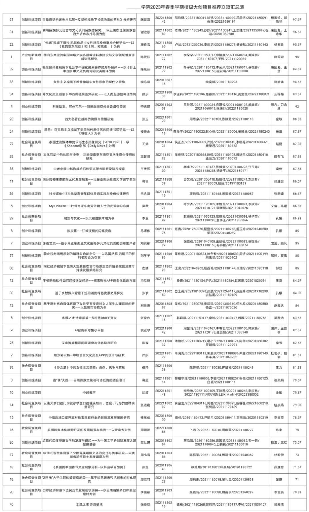 自2023年4月6日收到本科生院下发的《关于组织申报2023年春季学期大学生创新创业训练项目的通知》(网址:http://www.jwc.ynu.edu.cn/info/1009/3377.htm。下称:通知)及其相关附件要求后,白菜官网按照学校的相关工作安排,积极组织培训及立项工作。