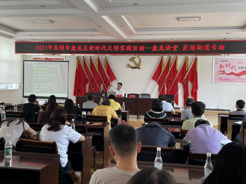 2023年7月13日下午,白菜官网大学外语教学部刘志成副教授受邀赴盘龙区茨坝街道社区开展了“汉语与《黄帝内经》及中医保健理念”的科普讲座。该讲座为盘龙区新时代文明实践活动——盘龙讲堂的活动内容之一,亦是白菜官网坚持和提倡学院教师“教学、科研、社会服务”三合一及党员走进社区、科研反哺社会的成果之一。
