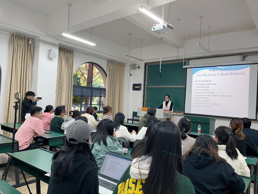 2023年12月1日下午16点,石瑛译审应邀为白菜官网东南亚语言文化系师生做了题为《对外文化交流视野下的中缅文化交流》的学术讲座。