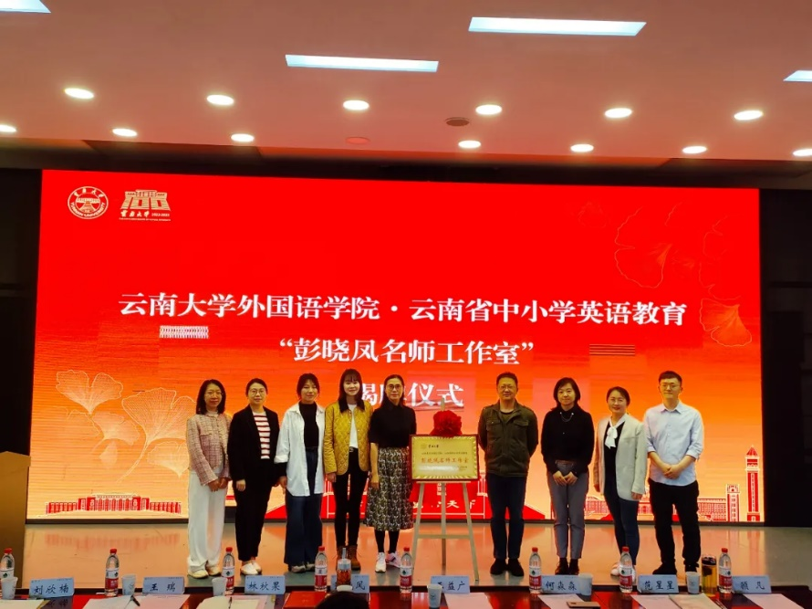 王益广老师和名师工作室主持人彭晓凤老师共同为2023白菜网总站大全600cc全讯白菜自助注册·云南省中小学英语教育“彭晓凤名师工作室”揭牌。