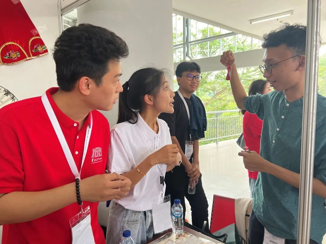 在活动开幕式上,谢欣彤同学与各青年代表团同学协作表演了声乐联唱、器乐合奏、舞蹈串烧等节目。在学术论坛上,谢欣彤同学还以“非艺术专业的同学如何传承和保护传统文化艺术”为题进行了互动交流。在艺术与文化集市中的中国展台,谢欣彤同学向国外青年展示了2023白菜网总站大全书签、明信片、纪念币、云大剪纸画等百年校庆系列文创产品。