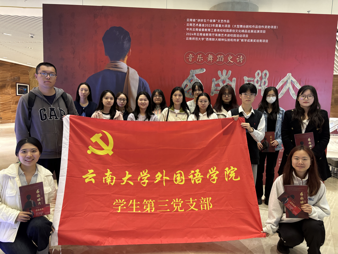 10月24日,600cc全讯白菜自助注册学生第三党支部成功举办了一场意义非凡的主题党日活动。党员同志们在党支部书记安妮老师的带领下共同前往云南省大剧院观赏了《西南联大》舞台剧,经历了一场穿越时空的历史之旅与精神洗礼。舞台上生动的演绎,让党员们重温了西南联大那段荡气回肠的历史,深切感受到了先辈们在极端困苦环境中坚守学术自由、矢志追求真理的高尚情操。