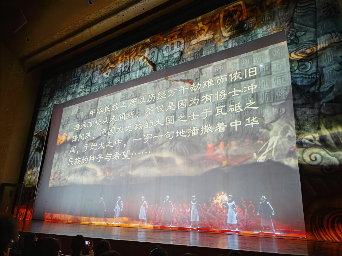 今天非常有幸能通过支部党日活动观看音乐舞蹈史诗《西南联大》。演出中,音乐激昂而深情,舞蹈充满力量与美感,两者相得益彰,共同构筑了一幅幅感人至深的画面。通过一方舞台,我仿佛置身于那个战火纷飞的年代,感受到了西南联大师生们的坚定信念与不屈精神。最让我震撼的是联大师生在战火中声嘶力竭的呐喊。那其中充满着对正义的呼唤和对知识、未来的渴望,正如歌曲中歌唱的“只待那大风起兮扫顽敌,还我书声朗朗,山高水长。”
