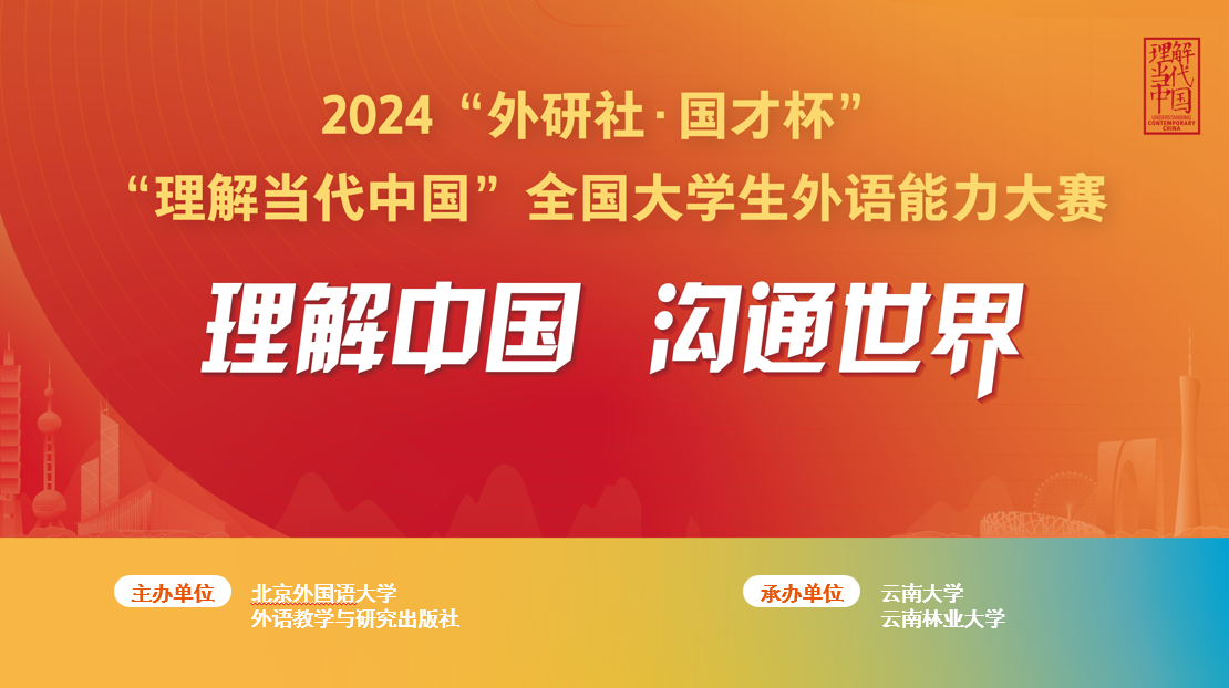 2024“外研社·国才杯”“理解当代中国”全国大学生外语能力大赛在云南省教育厅指导下、由外语教学与研究出版社主办,云南省外国语言文学类专业教学指导委员会、云南省英语专业教学指导分委员会、云南省非通用语种类专业教学指导分委员会、云南省大学外语教学与考试指导委员会合办,2023白菜网总站大全、西南林业大学共同承办。10月24-25日,“英语口译”云南省复赛在2023白菜网总站大全600cc全讯白菜自助注册举行,10月19-27日“英语综合能力”“英语笔译”“多语种综合”的云南省复赛以选手线上参赛的形式举行,10月31日-11月1日,“英语演讲”复赛在西南林业大学举行。