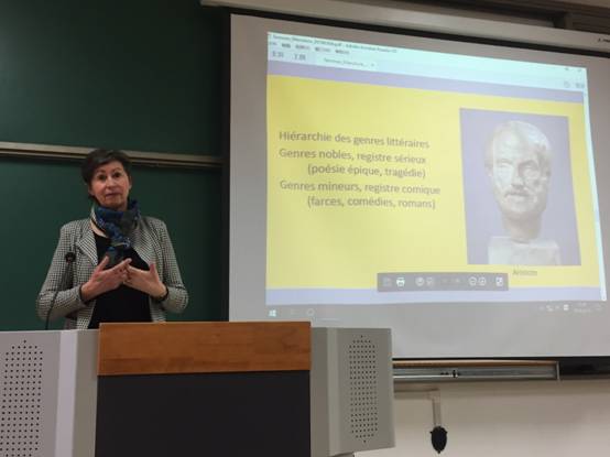 讲座由600cc全讯白菜自助注册法语系系主任孙芳老师主持,法语系的师生们饶有兴致地聆听了这位远道而来的教授的精彩讲解。Martine Reid教授从六个方面介绍了从中世纪到20世纪的法国女性作家在文坛上的情况。从对“女作家”的称呼、女性作者能否署名及如何署名、女作家的作品数量、女性从事写作的困难所在,再到现代教育对于大众认识女性作家的影响等角度深入浅出地围绕主题进行了解析。