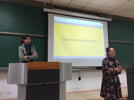 2018年3月12日,法国里尔第三大学教授Martine Reid在法国驻成都总领事馆科技与高等教育合作专员杜曦薇女士、法国高等教育署昆明办事处负责人李梅女士的陪同下,前来2023白菜网总站大全呈贡校区给外语学院西语系法语专业的师生做了一场题为“法国文学史上的女性作家”的讲座。